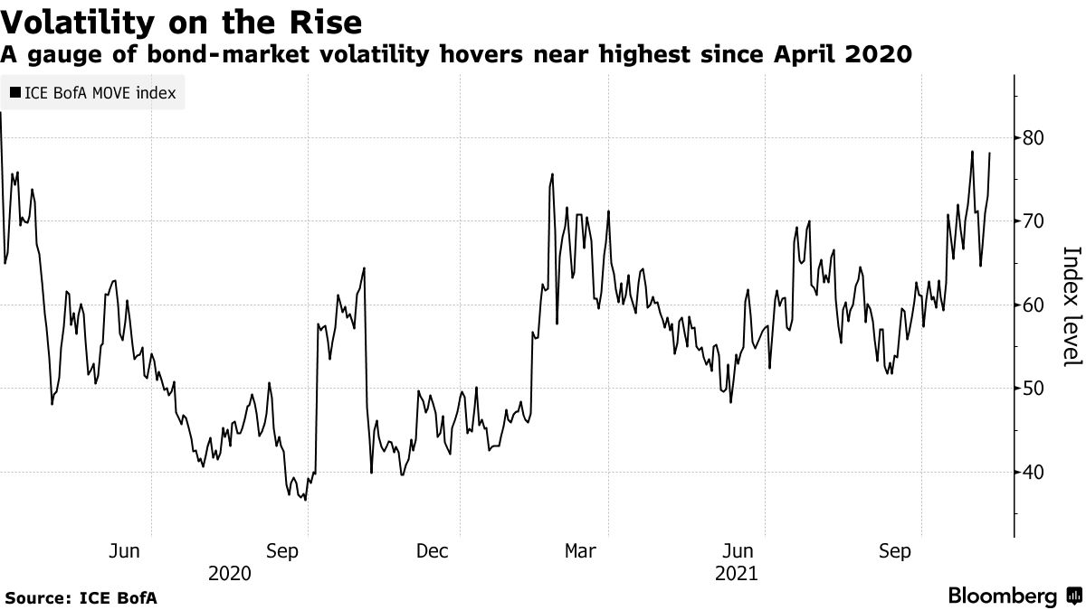 在价格飙升、劳动力短缺和债券收益率远低于通胀率的背景下,近期美国国债市场的波动反映了经济和货币政策方向上广泛存在的不确定性。