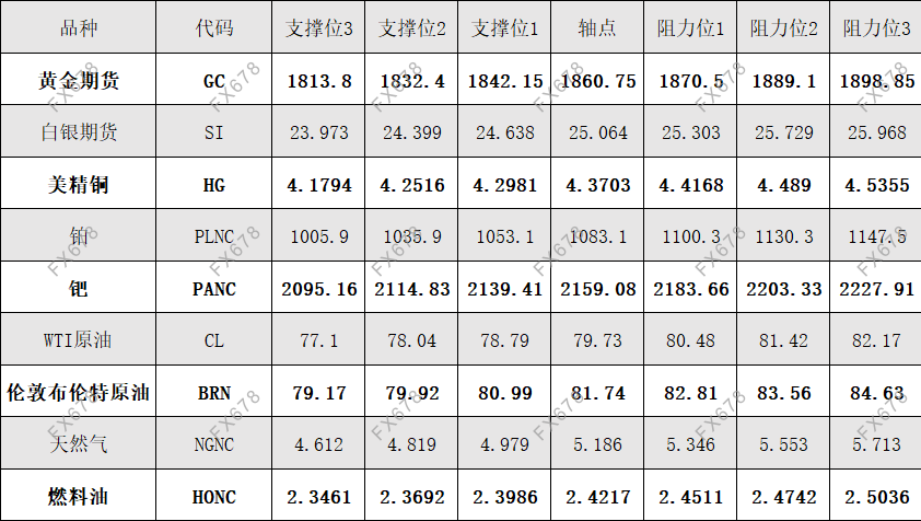 COMEX黄金、COMEX白银、美原油等商品期货阻力支撑位