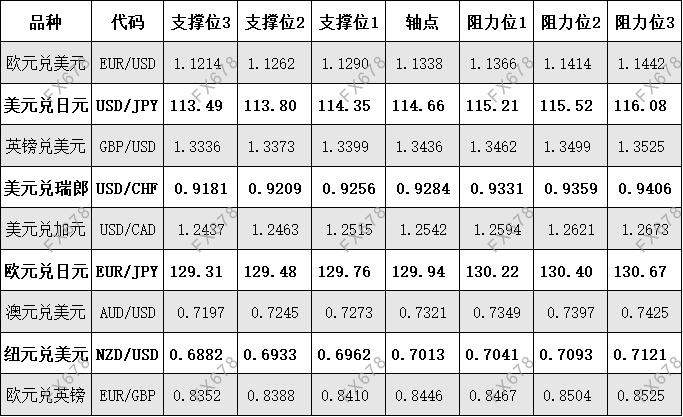 11月17日外汇、黄金、原油等期货阻力支撑位