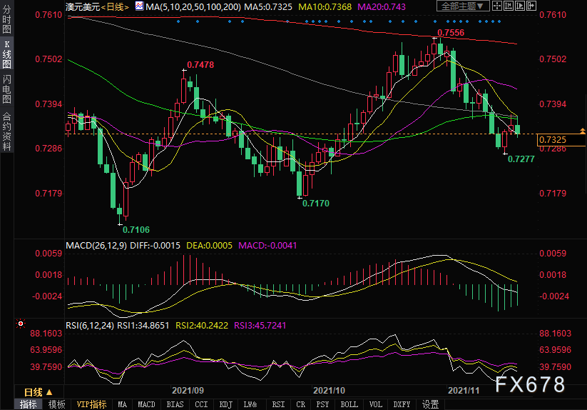 周二(11月16日)美洲盘早盘,澳元兑美元跌创两日新低至0.7314,主要受到美国零售销售数据好于预期的打压。