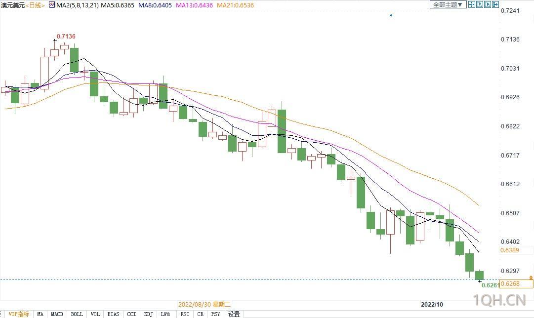 瑞士信贷预计澳元兑美元将跌至0.6200,并预计在2022年第四季度在0.6100-0.6750区间内交易。高盛将三个月期澳元兑美元的预期从0.67下调至0.62,六个月期从0.69下调至0.67,12个月期从0.73下调至0.71。