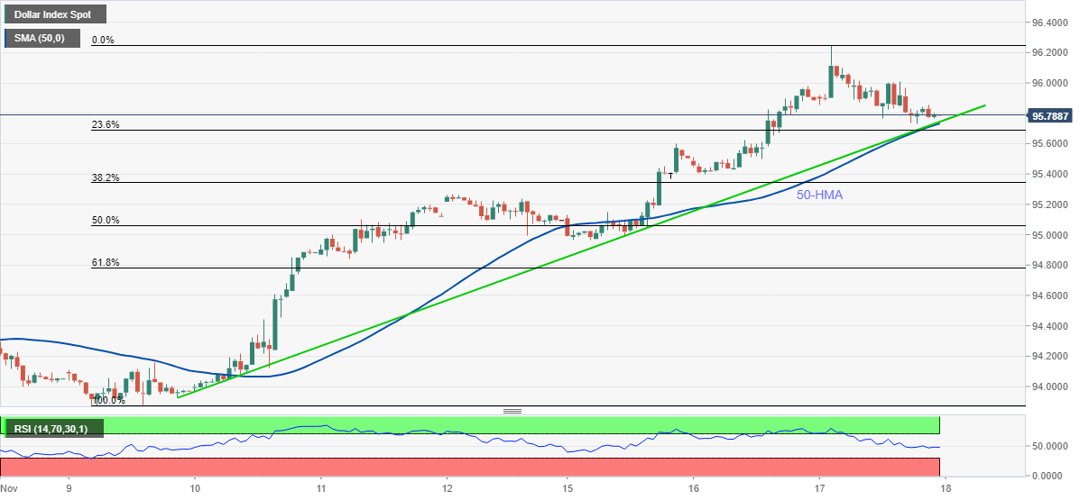 周四(11月18日)亚市早盘,美元指数小幅走低,目前略高于95.70水平。财经网站FXStreet分析师Anil Panchal周四最新撰文,对美元指数技术前景进行分析。根据Panchal,假如美元指数跌破重要支撑95.70,后市可能进一步回调。