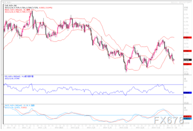 澳元兑美元周二周三两天大幅下跌至六周低点,但周四迎来回升,并从日低0.7252小幅反弹。澳大利亚维多利亚州州长周四宣布,大多数与冠状病毒相关的限制将从午夜开始解除。过去几周,澳大利亚人口最多的新南威尔士州和维多利亚州最严格的限制措施已经放松,这有望在第四季度提振经济。澳元兑美元也可能因纽元走强而得到提振。纽元是当天表现最好的货币,此前一项季度调查显示,企业经理对一年期通胀预期从第三季度的3.02%升至3.7%,为11年高点。交易商表示,该数据增加了新西兰联储在下周政策会议上选择加息50个基点的可能性。澳元和纽元通常紧密相关。但从澳元兑美元的中短期前景来看,技术面继续看空。自10月底以来,澳元兑美元一直在下行趋势通道内下跌。本周开始,澳元兑美元测试并受阻于下行通道顶部阻力位。上方阻力关注0.7316、0.7361、0.7409,下方支撑关注0.7220、0.7192、0.7170。
