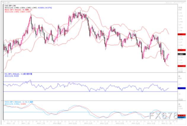 在周四外汇市场上欧元/美元继续自2020年7月以来的最低水平1.1260攀升至两日高点1.1358。美国11月费城联储制造业指数跃升至4月以来的最高点 39,而期值为 24。美国上周初请失业金人数(初领和续领)降至新冠病毒大流行以来的低水平。上述数据提振美元,但只是暂时的。美元指数连续两日下跌,跌破 95.70,从 96.00 上方遇阻后延续跌势。欧元/美元反弹后在 1.1330 上方获得支撑,如果它突破并处在 1.1400 上方,则可能获得更大的动能,进一步的空头回补势能会讲欧元拉回到1.15。即使在这种情况下,欧元/美元似乎仍在整理随时可能恢复的看跌趋势。若欧元/美元跌破 1.1330,将仍旧会维持弱势,焦点将转向 1.1300。若欧元/美元跌破1.1300水平,将测试下一个支撑位 1.1285。由于短线欧元/美元维持上涨倾向,周三收盘汇价走出十字星,自11月10日以来汇价延续下跌,未出现较大整理,欧元/美元暂时不大可能跌破1.1300水平。