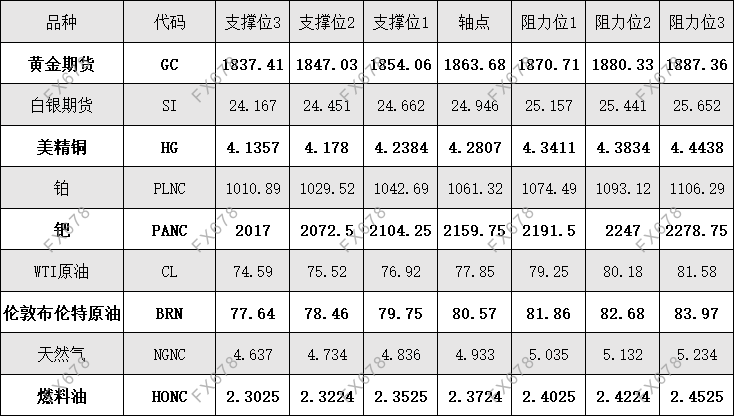 COMEX黄金、COMEX白银、美原油等商品期货阻力支撑位