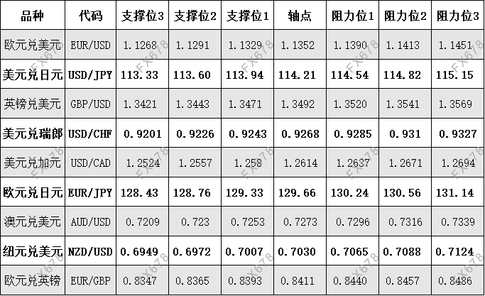 11月19日外汇、黄金、原油等期货阻力支撑位