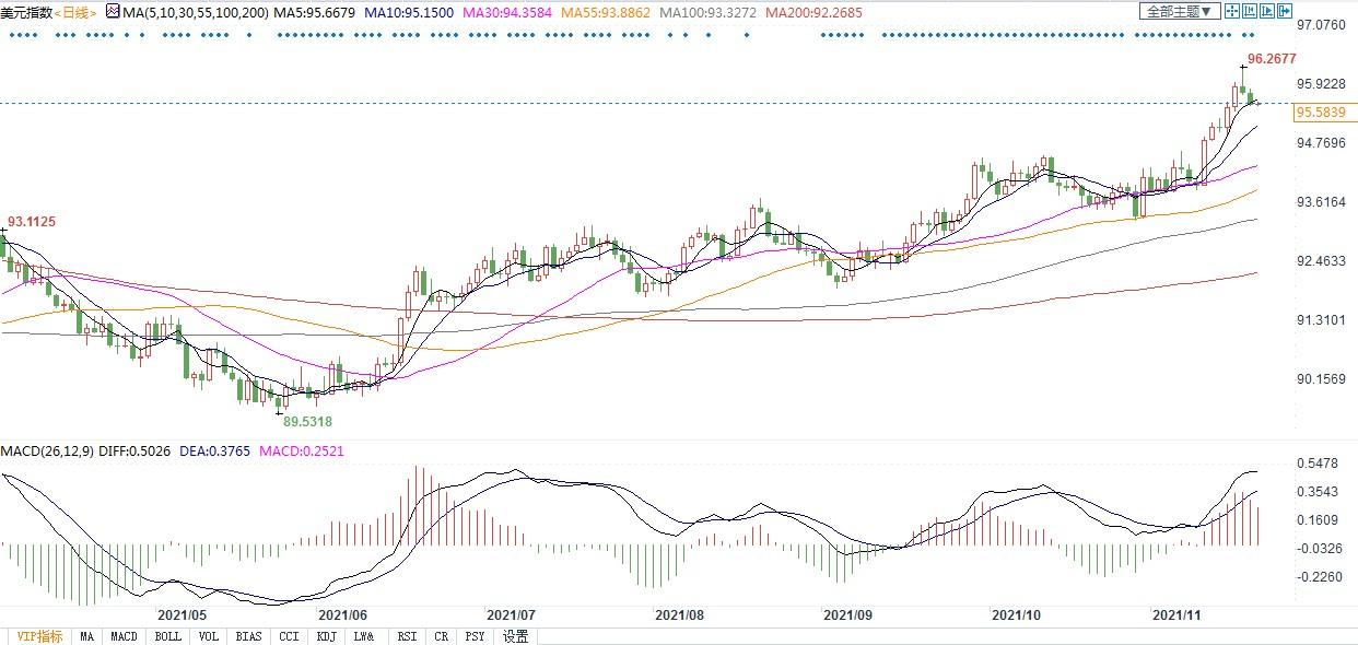 北京时间11月19日09:23,美元指数报95.61。