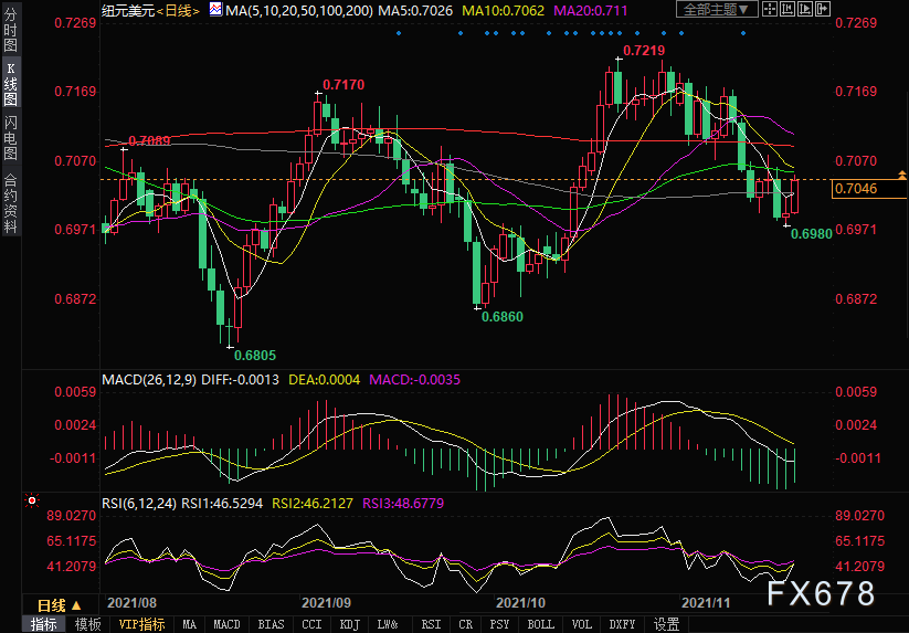 上方阻力关注0.7073、0.7100、0.7130,下方支撑关注0.7027、0.6980、0.6953。
