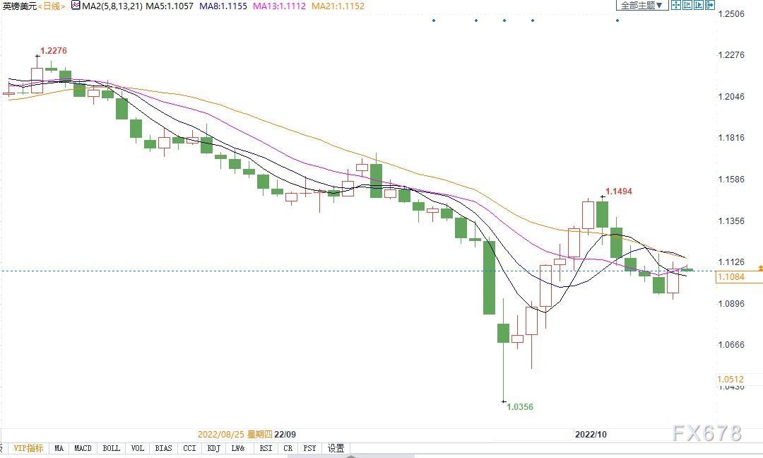 北京时间10月13日11:40,英镑兑美元报1.1084/85。