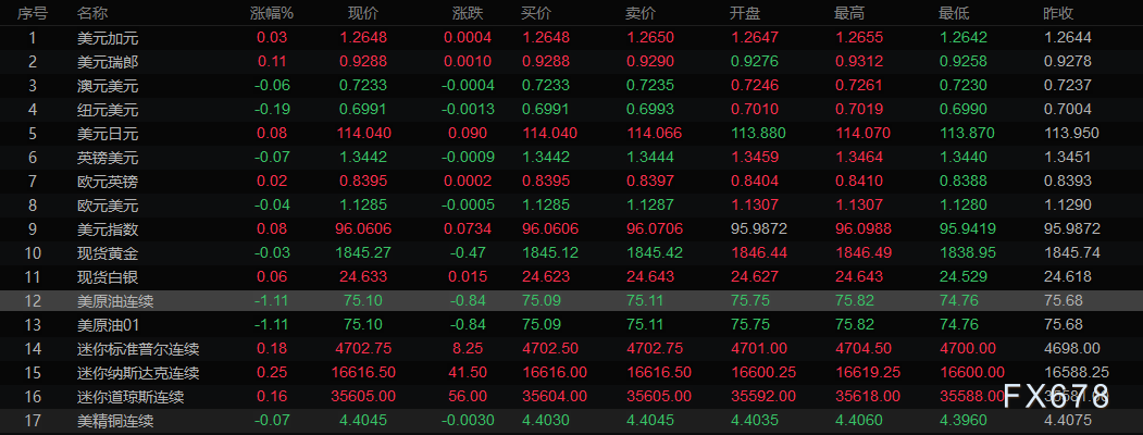 油价上周五大跌,美油一度跌逾4%,创10月7日以来新低至75.09美元/桶;布油跌穿每桶80美元,欧洲新冠病例数激增可能减缓经济复苏,同时投资者也在权衡主要经济体释出原油储备为油价降温的可能性。