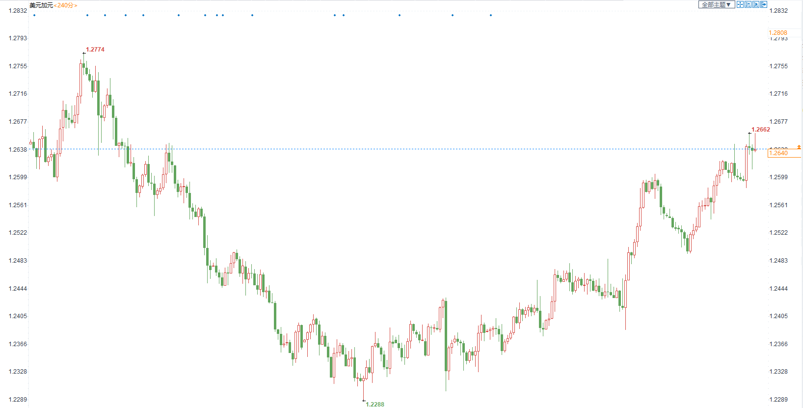 美元兑加元本周震荡走高,受强势美元支持,同时加拿大央行相对鸽派且油价回落施压加元支持汇价