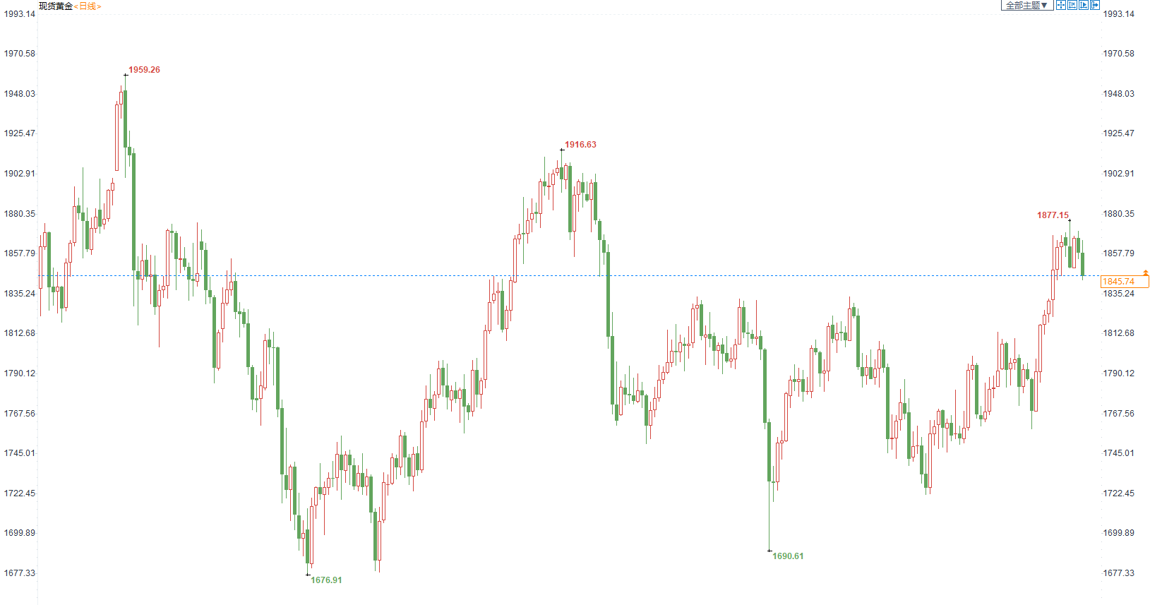 周六(11月20日)当周金价维持震荡走低的态势,金价当周下跌19美元,跌幅1%。