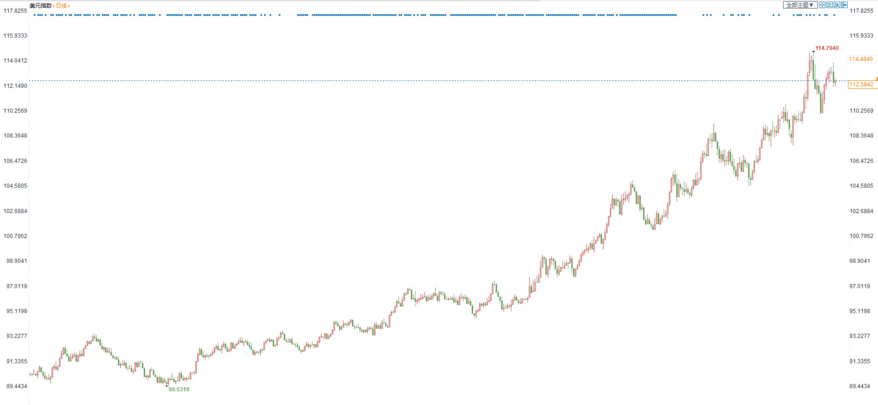 众所周知,当央行收紧货币政策时,货币走强是调整过程的一部分,美元也不例外。然而,由于美元是全球储备货币,这种强势可能在全球范围内产生巨大的连锁反应。几个前沿国家和一些较弱的新兴市场国家都存在压力,但这完全超出了美国政策制定者的权限。底线是:我们还远没有达成任何形式的广场式协议来遏制美元的上涨。