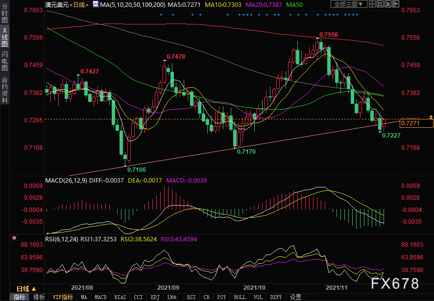从技术面来看,上周五的下跌令汇价成功跌破自0.7106延伸的上行趋势线,0.7106即今年8月触及的年内低点,这进一步支撑了近期从0.7556的数月高位大幅回调的前景。