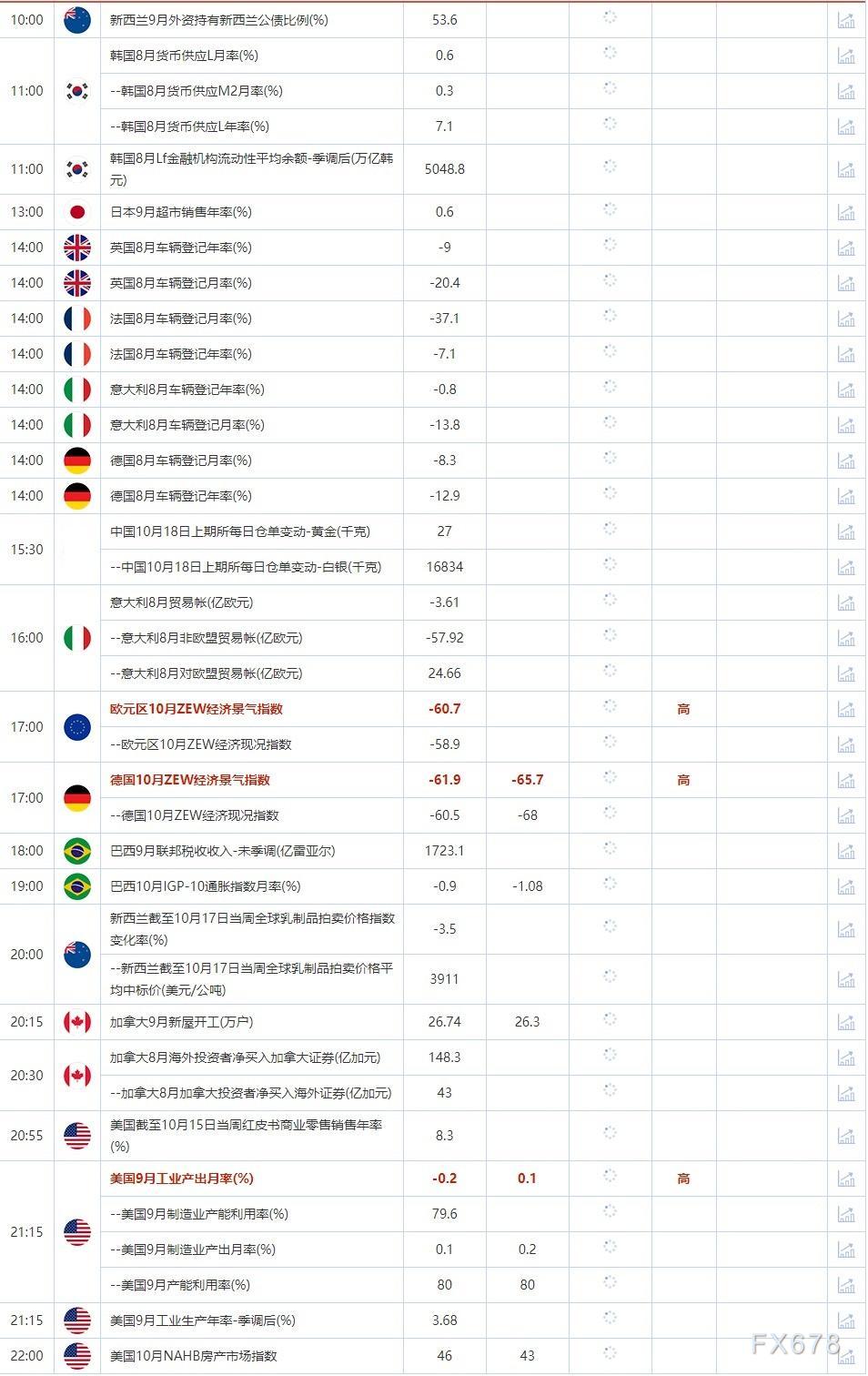 17:00 德国10月ZEW经济景气指数 , 前值 -61.9 , 预期值 -65.7 , 公布值:待发布