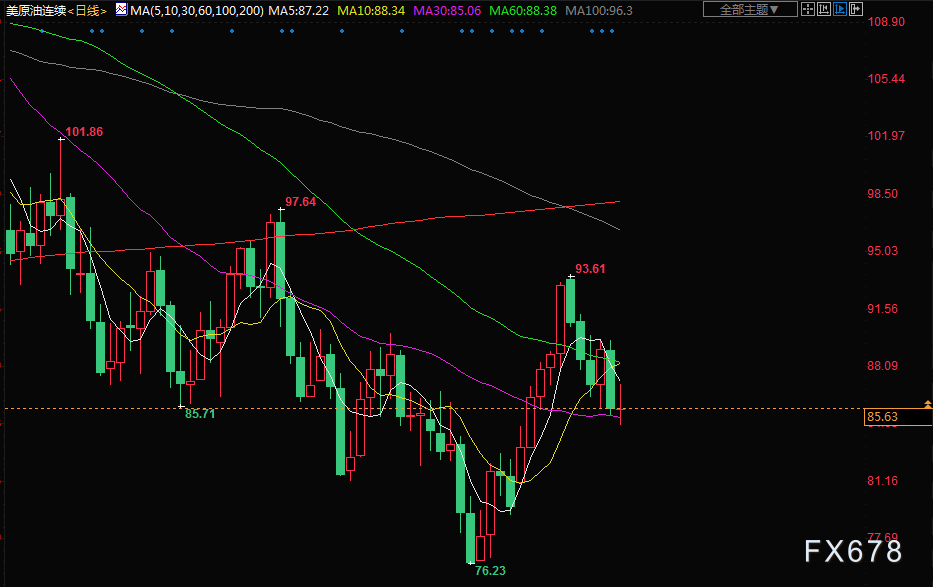 油价周一在震荡交易中持稳,因对高通胀和能源成本可能将全球经济拖入衰退的担忧增加,布伦特原油期货下跌0.01%,结算价报每桶91.62美元,在上周下跌6.4%后回升。美国原油期货结算价下跌0.2%,报每桶85.46美元,上周下跌7.6%。