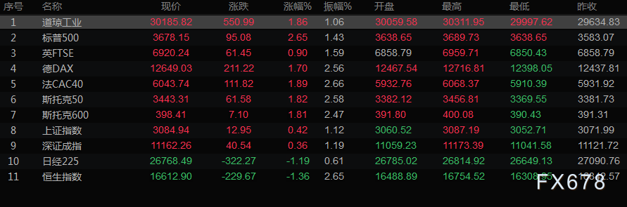 苹果、Meta Platforms Inc、亚马逊和特斯拉等成长股巨头均上涨,帮助提振标普500成长股指数攀升3.42%,创7月27日以来最大单日百分比涨幅;特斯拉、网飞和强生等公司预计将在本周晚些时候公布业绩。