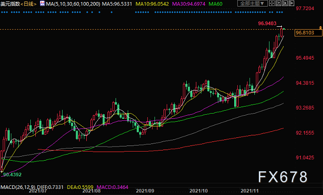 FOMC会议纪要公布后,美元指数周三上涨0.38%,一度创近四个月新高。目前因感恩节假期美国休市,本周剩下的时间预计市场交投较为清淡。