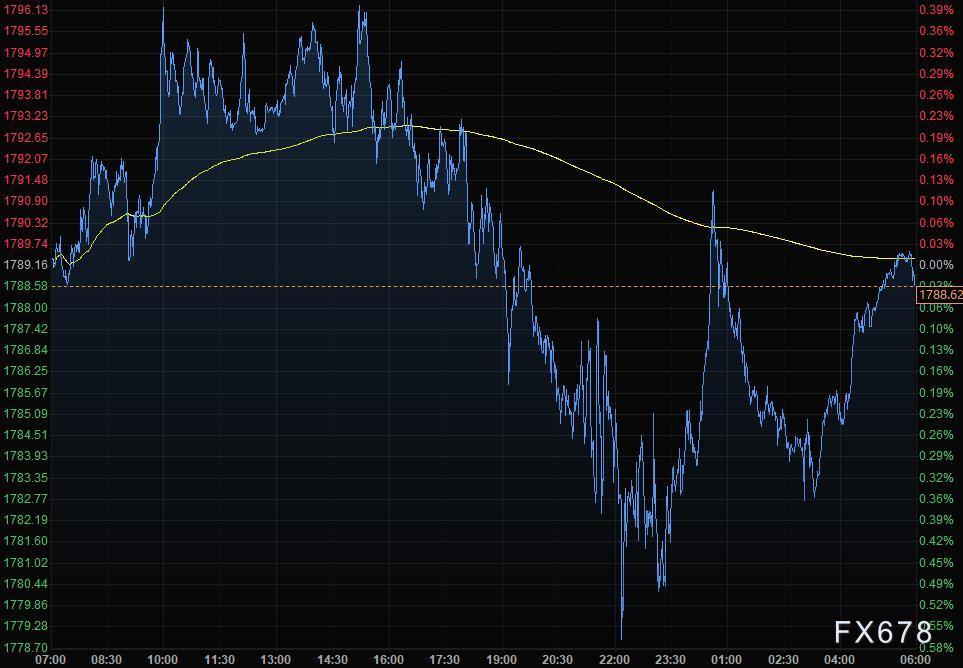 周三现货黄金跌至三周低点,盘中稍早曾跌至11月4日以来的最低水平1778.70美元/盎司;因美国经济数据强劲提振美元和美债收益率升高,市场对美联储早于预期升息的担忧加剧了悲观情绪。