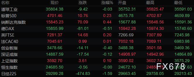 美股收盘情况:标普500指数上涨0.2%,报4701.46点;道琼斯工业平均指数基本持平,报35804.38点;纳斯达克综合指数上涨0.4%,报15845.23点;纳斯达克100指数上涨0.4%,报16367.81点。