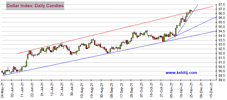 周五(11月26日)亚市尾盘,美元指数小幅下跌,现报96.70附近。新冠病毒出现目前为止的最强变异种,由此引发的避险情绪推动避险货币日元显著上涨,美元/日元已经跌破115大关。Kshitij咨询服务团队(Kshitij Consultancy Service)周五最新撰文,对美元指数、欧元/美元、欧元/日元、美元/日元、澳元/美元、英镑/美元以及美元/人民币后市走势进行前瞻分析。