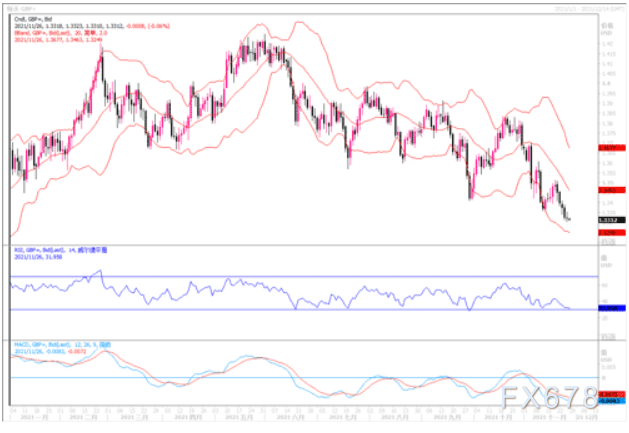 英镑兑美元难以保持盘整温和涨幅,并在周四刷新了今年以来的低点1.3306。尽管美元出现了一些获利回吐下滑,但英国退欧的好坏参半的信号还是在高水平吸引了空头。最新迹象表明,英国脱欧后英国与欧盟的关系不会很快进一步破裂,这给英镑带来了一些支持。这一点,再加上对英国央行将在12月加息的预期增强,帮助英镑/美元在周四交易活动的早期获得一些积极的动能。另一方面,美元在最近强劲上涨至16个月高点后出现了一些获利了结,这也推动了英镑兑美元汇率早盘上扬。尽管如此,英法两国在脱欧后的捕鱼权问题上不断恶化的争吵,限制了英镑的任何有意义的上涨。最新的进展是,据报道,法国渔民计划阻止英国船只进入法国港口,以抗议英国拒绝向他们发放更多在英国领海作业的许可证。基本面背景仍有利于做空交易员。英镑兑美元在1.33水平承压,1.3350 - 55区间将作为阻力位英镑从上周未能突破1.35后跌向1.33。英镑连续5天下跌,相对强弱指数(RSI)接近超卖,如果跌势延续至1.33下方,RSI的超卖可能在未来几天阻止对1.32的测试。但调整过后仍有进一步下跌看向1.30的可能性。