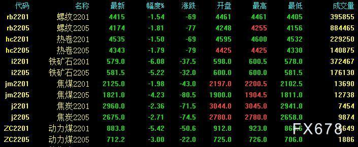国内商品期货夜盘多数收跌,螺纹期货收跌1.81%,热卷跌1.50%;铁矿石跌6.08%,焦炭跌2.36%,焦煤跌1.98%,动力煤收跌5.42%。