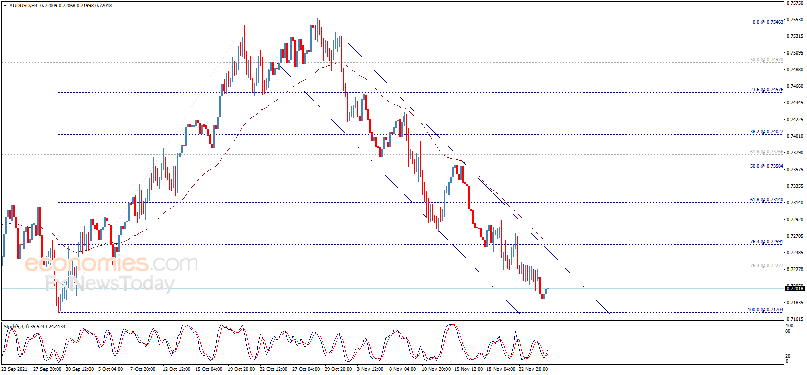 澳元/美元显现更多看空倾向,并接近我们等待的目标价位0.7170,如图所示,澳元/美元在看空通道内波动。EMA 50指标形成看空压力,我们预计澳元/美元将延续看空走势,一旦跌破0.7170,下一目标瞄准0.7135。