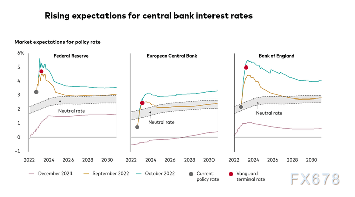英国央行的政策利率预计将在2023年达到近6%,而欧洲央行的利率预计将维持在4%以下。这些利率将远远高于现有的政策利率和2%左右的“中性利率”。中性利率预计既不会刺激也不会限制主要经济体。