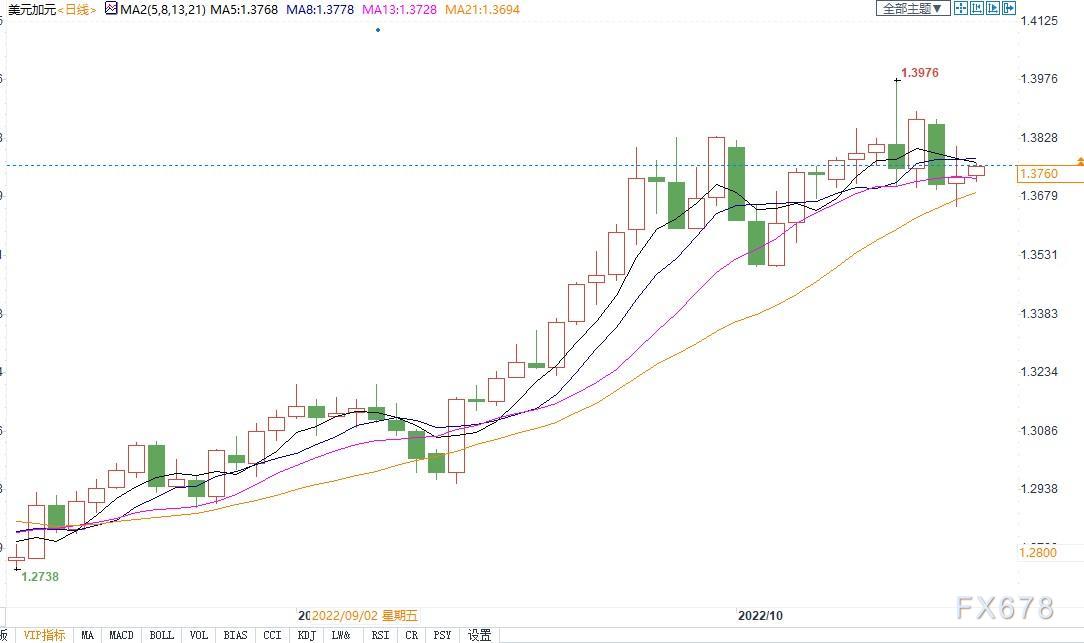 北京时间10月19日14:36,美元兑加元报1.3760/62