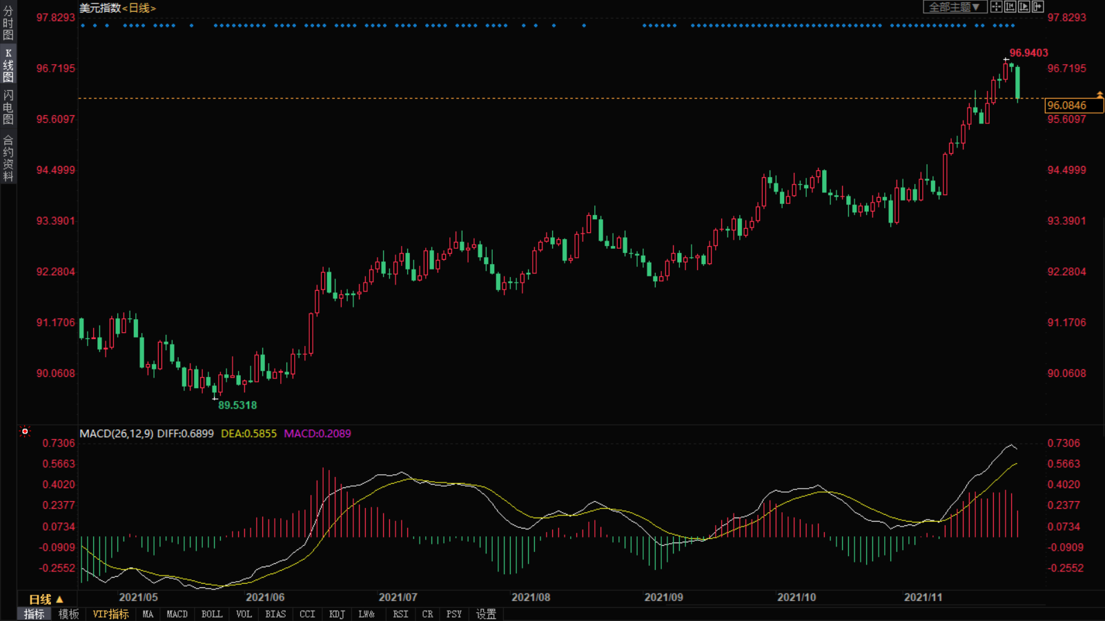 本周美国迎来感恩节假期,在浓厚的节日氛围中,美元也迎来连连利好,走势一路开挂,大涨触及近17个月高位,本月累计涨幅达2.77%。美联储公布鹰派会议记录、鲍威尔获连任提名、以及美国经济数据向好,都促使市场益发预期联储将比其他主要央行更早升息。货币市场消化了美联储在2022年7月前加息的预期,认为6月加息的可能也很大。