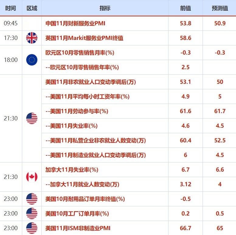 周五(12月3日)关键词:美国非农就业报告,美国11月ISM非制造业PMI