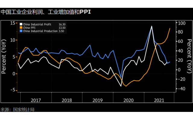 价格上升可能给企业利润带来提振,10月份生产者价格指数(PPI)同比上升13.5%,9月上升10.7%。