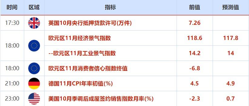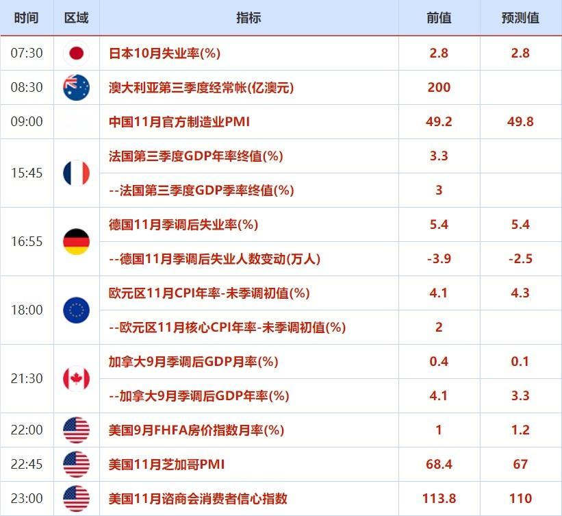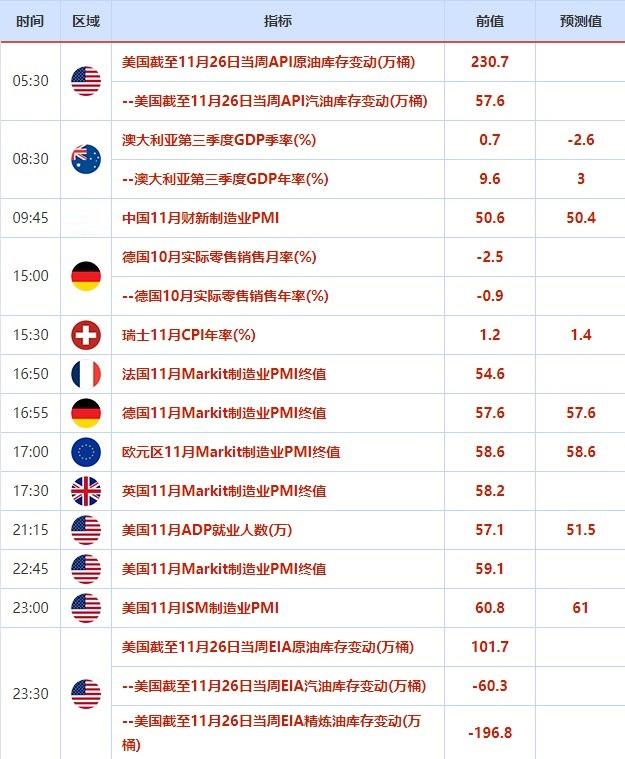周二(11月30日)关键词:中国11月官方制造业PMI,欧元区11月CPI年率