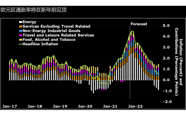 能源对欧元区总体通胀率的贡献在10月达到2.2个百分点的创纪录高水平,因油价和天然气价格上涨。预计这些因素的影响将在11月再次加剧,因为道路燃料成本可能会环比上升。随着一些国家政府采取措施来缓解压力,家庭能源支出的上升应该会有所缓和。