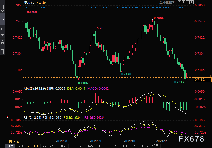 周一(11月29日)澳元兑美元在北美市场保持了盘中的温和涨幅,尽管似乎难以在0.7160上方延续上涨。
