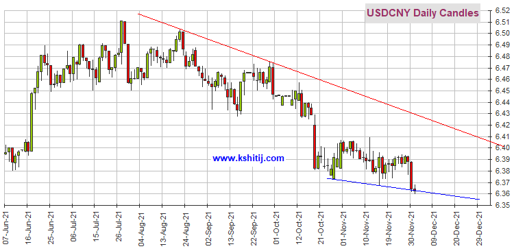 美元/人民币继续大幅下跌,并可能在中短期内跌向6.36/35。只要维持在6.38下方,那么前景仍然看跌。