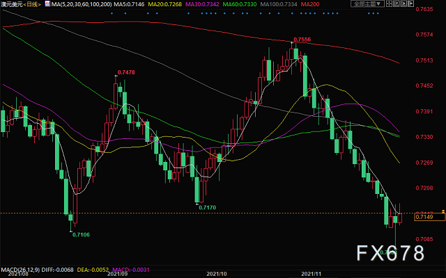 周二(11月30日),因美联储主席鲍威尔的鹰派言论引发美元尾盘反弹,澳元兑美元跌至2020年11月以来的最低水平。鲍威尔在参议院银行委员会(Senate Banking Committee)作证时表示,现在是时候放弃“暂时”这个词了,美联储需要考虑结束资产购买缩减计划了,或许要早几个月。他进一步补充说,通胀持续走高的风险已经增加,预计高通胀将持续到明年。对鲍威尔的言论做出反应的是,美元出现了大量的日内空头回补,并对澳元兑美元施加了沉重的压力。