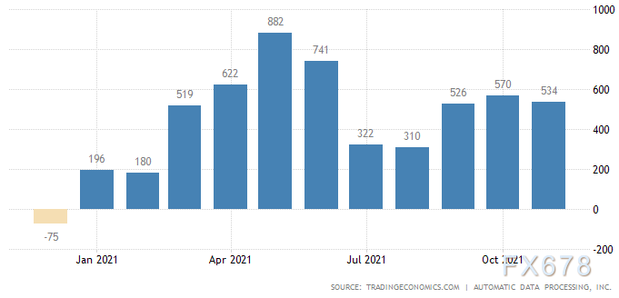 ADP Research Institute周三发布的数据显示,11月份企业就业人数增加53.4万人,10月份修正为增加57万人。接受调查的经济学家预期中值为增加52.5万人。