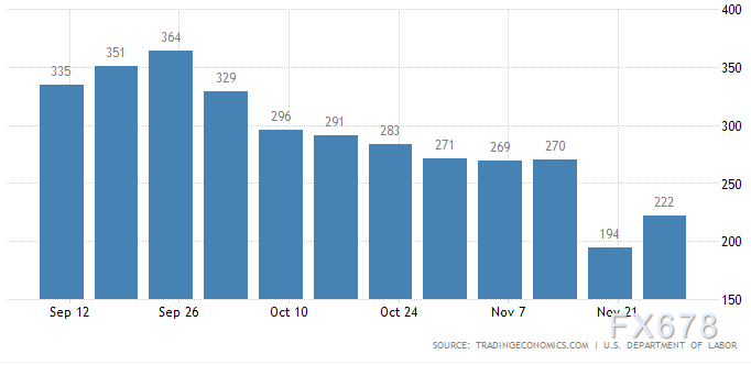 美国劳工部周三公布的数据显示,11月27日当周初请失业金人数经季节调整后增加2.8万人至22.2万人,低于市场预期的24万。之前一周初请失业金人数降至19.4万人,为1969年以来最低。