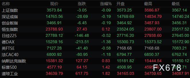 美股收盘情况:标普500指数上涨1.4%,纳斯达克100指数上涨0.7%,纳斯达克综合指数上涨0.8%,道琼斯工业平均指数上涨1.8%,罗素2000指数上涨2.7%。