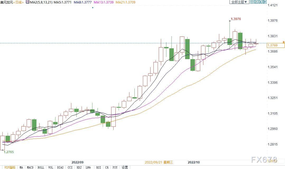 北京时间10月20日14:39,美元兑加元报1.3768/70