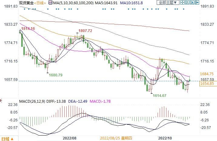 北京时间10月24日10:43,现货黄金报1655.02美元/盎司