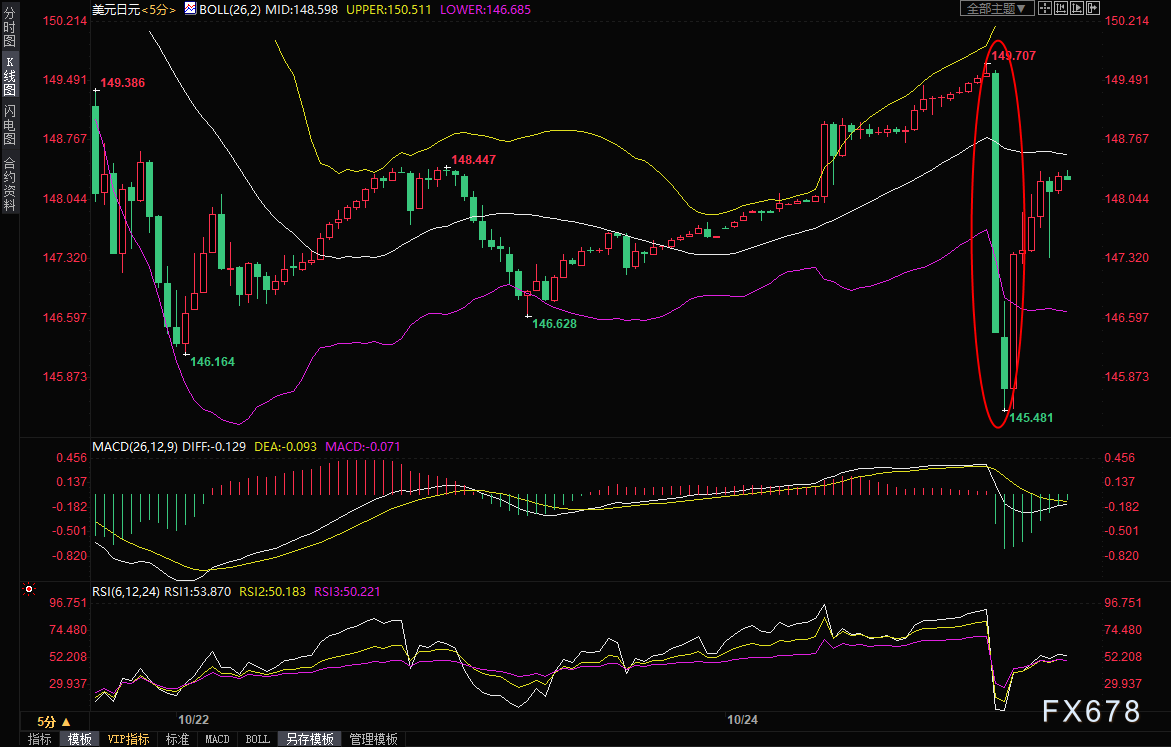 上周五纽约时段,美元兑日元盘中也一度快速下次逾580点,从逾32年高点151.94附近,跌至146.16附近,收报147.60附近。