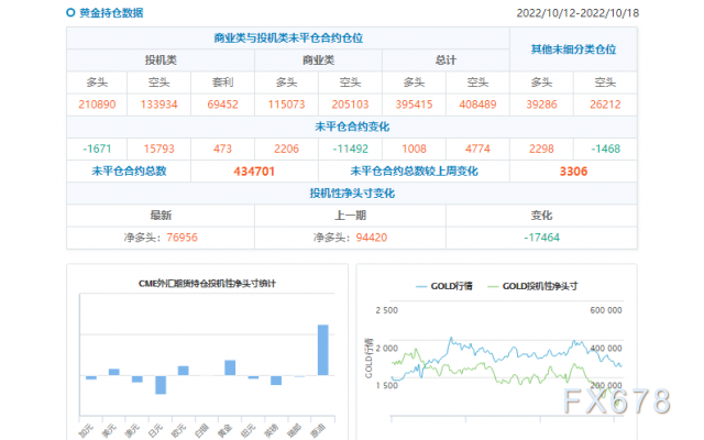 CFTC持仓数据:截至10月18日当周,投机者转而持有COMEX黄金净空头头寸20633手合约,较上周净多头的1290手合约减少21923手。持有COMEX白银净空头头寸7599手合约,之前一周持有净多头头寸1123手合约。COMEX铜净空头头寸5549手合约,之前一周持有净多头头寸830手合约。