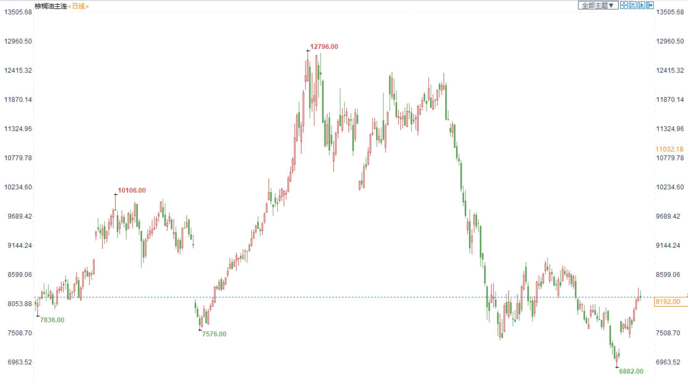 棕榈油2301合约日内跌0.15%,收盘8192元/吨;广州市场棕榈油8440元/吨。