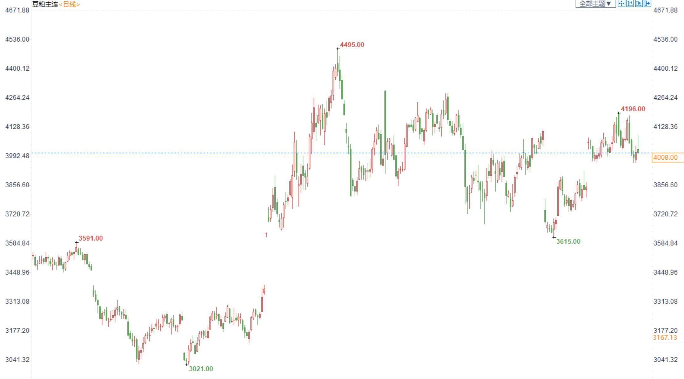 豆粕2301合约日内跌0.15%,收盘价4008元/吨,现货张家港43%蛋白豆粕5425元/吨。