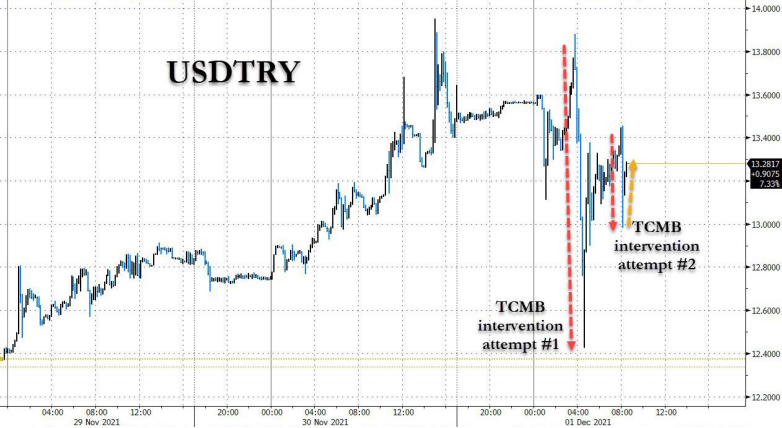 周五傍晚,土耳其央行表示,正在干预外汇市场,出售美元。美元兑土耳其里拉短线走高逾5000点,已收复土耳其央行干预市场言论以来的跌幅。早在周三,为抑制土耳其里拉的贬值,土耳其央行自2014年以来首次干预外汇市场。