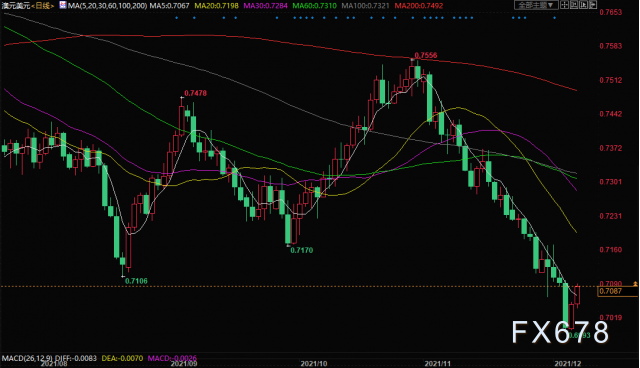 周二(12月7日)欧市盘前,澳元兑美元周一从2020年11月以来的低点0.7000水平强劲反弹,连续第二天获得上行动力。市场中普遍存在的风险偏好情绪是持续推动澳元走高的一个关键因素。澳洲联储对经济前景持乐观态度,但不足以暗示会比预期更早加息。从技术面来看,澳元兑美元虽然强劲反弹,但要确认后市涨势,还需要突破关键阻力。