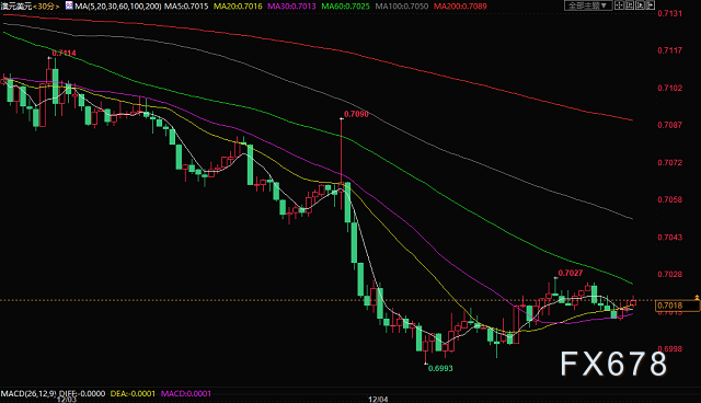 北京时间12月6日16:00,澳元兑美元报0.7018/20